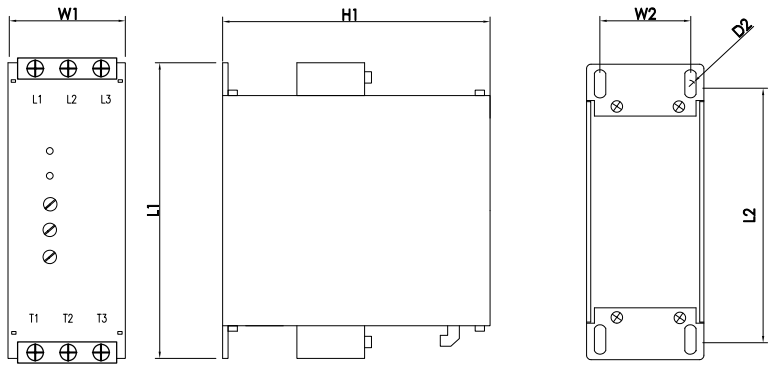 1 安装方向:为了确保软起动器在使用中具有良好的通风及散热条件,软起动器应垂 直安装。